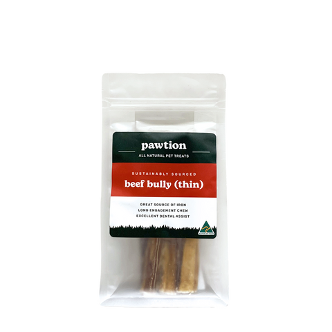 Pawtion’s Australian-made Beef Bully Sticks (Thin) are recommended for dogs that are 0kg to 8kg.